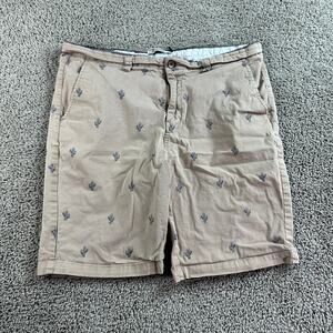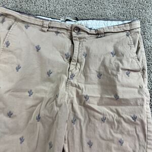 Hudson & Barrow Shorts Mens 36 Beige Blue Cactus Print Stretch Chino Pockets