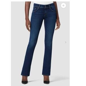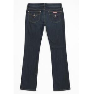 Classic Hudson Beth Baby Boot Jeans in a dark wash denim (style NAW176DIF, color CLF1). Features a flattering mid-rise fit with a slim leg that subtly flares at the hem for a baby bootcut silhouette. Designed with Hudson’s signature double-button closure, V-shaped flap back pockets with button details, and premium stretch denim for comfort and style. Perfect versatile jeans that pair well with heels, boots, or casual flats. A timeless wardrobe staple.