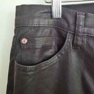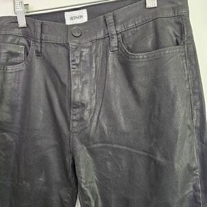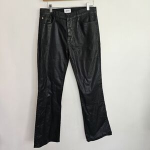 Hudson Blair Crown high-rise bootcut coated black jeans with pockets.