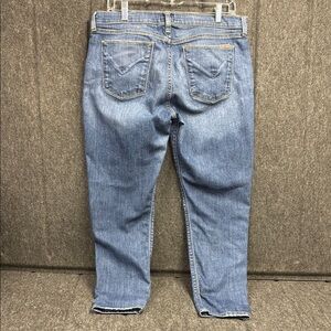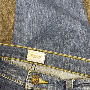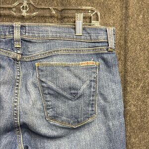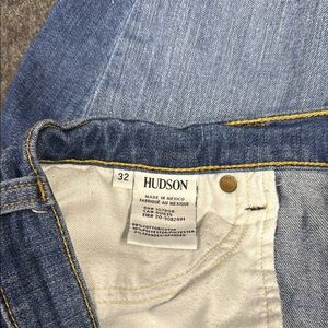 These Hudson Jeans in a classic blue hue offer a relaxed boyfriend fit with stylish distressing for a laid-back vibe. The light-wash denim features natural fading and whiskering, creating a trendy gradient effect. Ideal for casual outings, these jeans combine comfort with a fashionable edge.