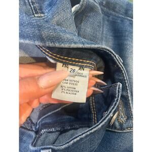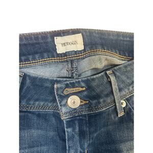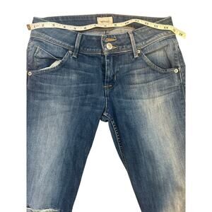 Hudson Colin Mid Rise Skinny Jeans in a distressed mid-wash denim size 26