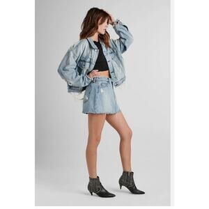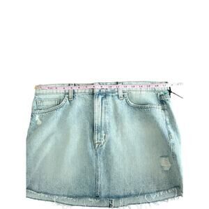New with tags Hudson mini skirt in women’s size 29. Light wash denim with distressed detail and frayed raw hem. 100% cotton, made in Mexico. Mid-rise fit with zip fly and belt loops. A perfect piece for summer styling—pair with tanks, vintage tees, or oversized button-downs.