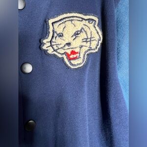 Great for all seasons denim and fabric material Hudson Jacket button down with 2 original patches a one of a kind jacket with great quality materials size small NWOT bomber style jacket