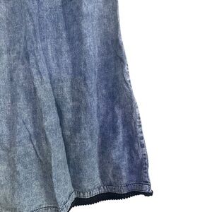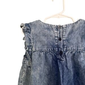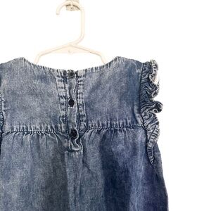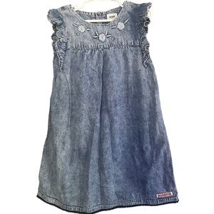 Hudson Girls Demin Embroidered Neck Flutter Ruffle Sleeve Blue Dress Size 6
