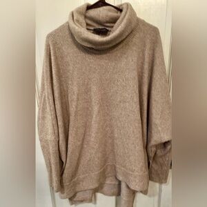 Hudson Gray Oversized Soft Turtleneck Sweater Oatmeal Hi-Low Hem M