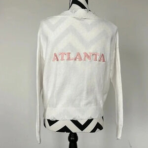 Adorable V-Neck sweater. Atlanta is stitched in pink on the back. In great condition. The worn edges are part of the design of the sweater.