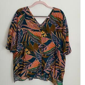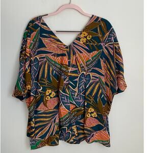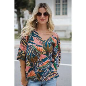 Hudson Grey Incredible Allure Teal Leaf Print Oversized Blouse