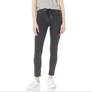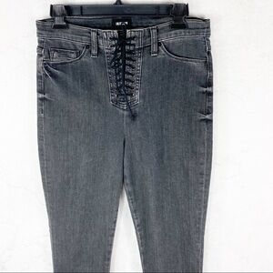 Hudson Reverie Black Bullocks High Rise / High Waisted Lace Up Skinny Denim Jeans. Back Pockets. Belt Loops. Lace Up Front Closure. Button Closure. Dark Charcoal Gray / Black Color. Stretchy. Sculpt Structure Details. Super Cute & Comfy. NWT / New With Tags. Great Condition. No Stains or Rips.