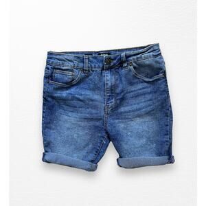 Medium blue wash denim shorts from Hudson in girls' size 14. Bermuda length, adjustable waist. Very good pre-loved condition.