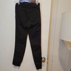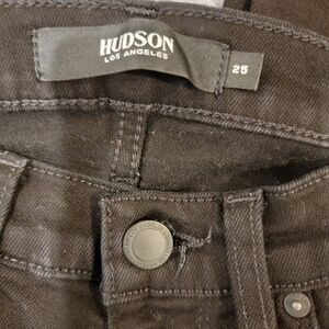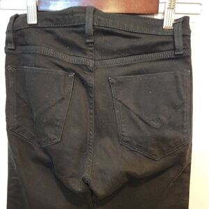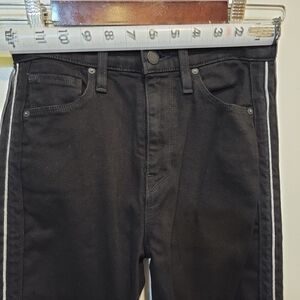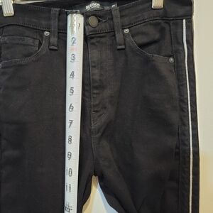 Hudson Holly High Rise Black Skinny Ankle Jeans Raw Hem Tuxedo Stripe Size 25