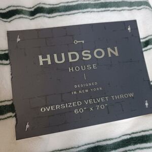 Brand new in packaging. Please scroll pictures for more details. Hudson House MCM Modern Living Luxury Oversized Velvet Throw 60in x 70in Dark Green White Color. 100% Polyester. Pet and smoke free home.