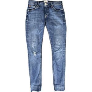 Hudson Jeans 25 x 28 Blue Krista Ankle Skinny Raw Hem Low Rise Distressed