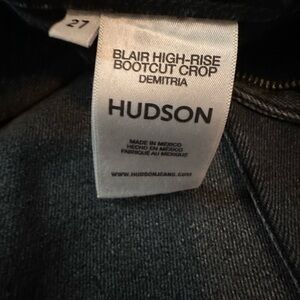 These Hudson Jeans offer a sleek black finish in a trendy ankle and cropped style, perfect for a modern, casual look. The denim provides a comfortable fit with a touch of sophistication, making them a versatile addition to any wardrobe.