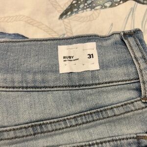 Embrace a laid-back style with these blue jean shorts from Hudson Jeans, featuring a distressed finish and a comfortable mid-rise fit. The soft, worn-in look and subtle whiskering make them perfect for casual outings. Enjoy the relaxed vibe of these classic jean shorts.comes from smoke free doodle friendly home size 31