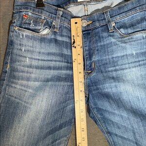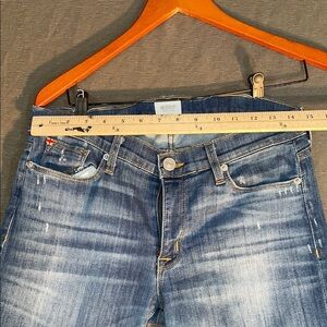 Experience the perfect blend of style and comfort with these Hudson Jeans. The skinny fit and blue hue are complemented by a vintage fade and whiskering, offering a chic, worn-in look. Raw hems add a trendy edge, making these jeans a must-have for casual outings. Excellent condition, Taking offers and willing to negotiate