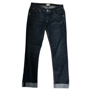 Hudson Jeans offers a timeless straight leg design in a rich blue hue, perfect for any casual occasion. The deep indigo wash and slightly worn look add a touch of vintage charm to these versatile jeans. Enjoy a comfortable fit that maintains a classic silhouette.