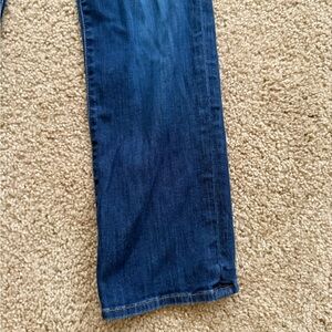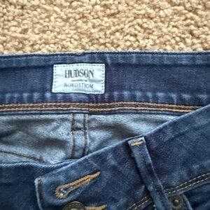 Experience the timeless appeal of Hudson Jeans with these blue straight-leg jeans, crafted for a comfortable and stylish fit. The medium to dark wash and natural fading offer a lived-in look, perfect for casual outings. Enjoy the durable denim fabric that combines both style and longevity.
