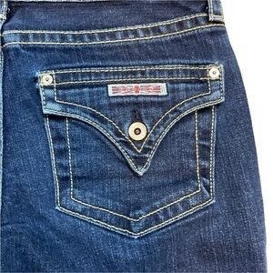 This jeans are in great condition. They have been hemmed so please read measurements before purchase.