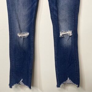 Hudson Collin Flap Skinny Crop Frayed Hem Jeans. Sexy straight leg style that works great with heels, converse or boots! Premium power stretch denim that smooths and sculpts, and never sags! Dark indigo wash, distressed coloring, frayed hems and knees. Like new. Size 27.