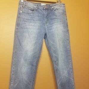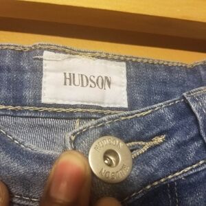 Girl's ankle length, high rise, super skinny jeans, by Hudson, size 16. Light indigo with whiskering, fading and light distressing throughout. Excellent pre-owned condition; no flaws.