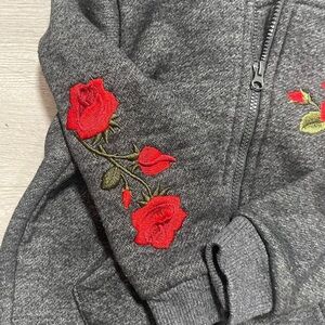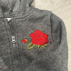 Hudson Jeans Kids Gray Hoodie with Red Rose Embroidery