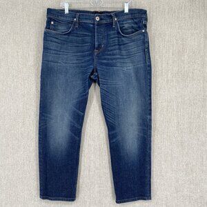 Hudson Jeans Mens 38x26 Blue Axl Skinny Denim Whisker Button Fly Slim Stretch