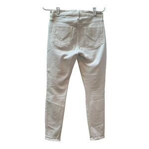 Hudson Jeans Nico, a pair of mid-rise super skinny jeans featuring a distressed ankle design. This jean offers a sleek, modern silhouette, combining a comfortable mid-rise fit with a form-fitting super skinny leg. It also features strategically placed distressing at the ankles, adding an edgy touch to the overall look. These details offer a stylish and contemporary aesthetic, suitable for a variety of casual outfits.