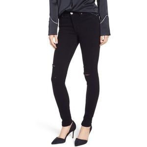 These Hudson Jeans Nico are a Midrise with a Super Skinny Ankle detail in the color Clayton. These are a true black jean in a size 26 with some destruction at the knees. These have only been worn a handful of times and are in great condition.