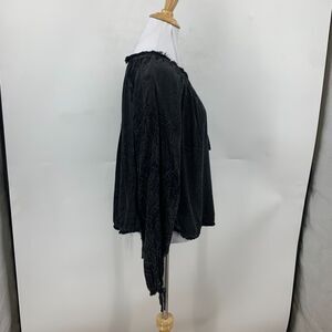 Hudson Jeans Peasant Blouse Womens S Small Black Distressed Ruffle Fringe Collar