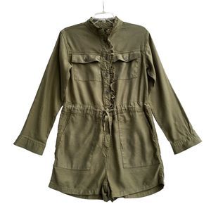 Hudson Jeans Utility Jumpsuit S Olive Green Long Sleeve Lyocell Linen Drawstring