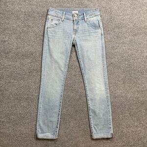HUDSON JEANS WOMENS 25 LIGHT DENIM COLLIN CROP STRAIGHT CUFFED HEM FLAP POCKET