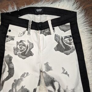 Hudson Jeans 'Leeloo' Colorblock Crop Skinny Jeans (Black/White Floral) at Nordstrom. Side stripe adds a chic defining feature to a pair of cropped, floral print denim jeans cut with a sleek, skinny silhouette.
