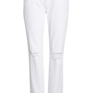 Hudson Jessi Relaxed Crop Boyfriend Jeans. A clean white wash balances the slouchy fit of casual-cool high-rise jeans aged with ripped knees and stylish frayed hems. The jessie relaxed cropped boyfriend jean has destruction at knees gives it that lived-in vibe, and vintage feel. Size down for more fitted style.