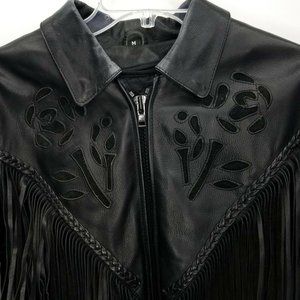 Hudson Leather Womens Motorcycle Jacket Size Medium M Tassels side ties heavy.