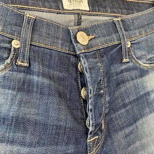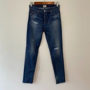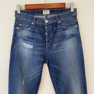 Hudson Leigh Boyfriend Jeans Size 26 Dark Wash Button Fly Distressed