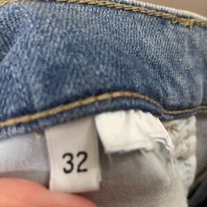 Size 32. The fabric tag has been removed. Inseam 25 1/2 inches. Rise 12 1/2 inches. Waist 18 1/2 inches measured flat. Stretchy. Great condition!
