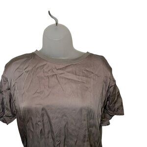 Hudson Los Angeles blouse, satin modal top, mixed media blouse, taupe neutral blouse, women’s size small, short sleeve blouse, viscose modal shirt, casual chic top, workwear blouse, Hudson LA