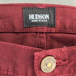 Hudson LouLou Tuxedo Stripe Burgundy Pink Skinny Jeans Cropped Low Rise
