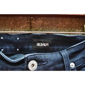 Men’s slim straight jeans by Hudson in a deep navy blue. Clean and minimal styling with signature angled back pockets and durable stretch fabric for added comfort. Five-pocket construction, button and zip fly closure, and subtle fading throughout. These jeans offer a modern, tapered look without being too tight.