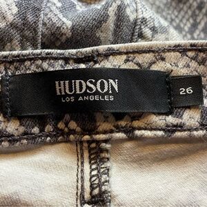 Hudson Metallic Python Gray Skinny Jeans Size 26. Excellent used condition. 3 front and 2 back pockets. Slight silver metallic hue. Measures waist 27", inseam 28", rise 10".