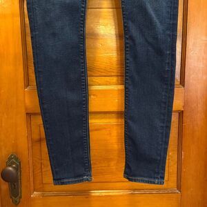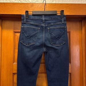 Great condition dark wash cotton, polyester, Lyocell, and spandex blend skinny Blair jeans from Hudson. Women’s size US 26. Measurements taken flat are approximately: