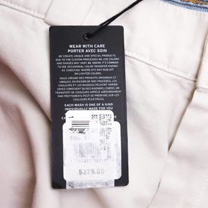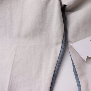 NEW with tags, with flaw: Faint stain line on the front right thigh (stain will likely come out with treatment, see photos)..