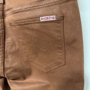 Hudson Natalie Midrise Super Skinny Ankle Desert Storm Brown Coated Jeans 28