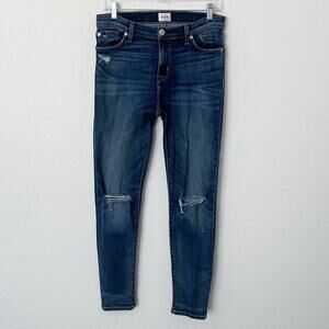 Hudson Size 29 Nico Mid Rise Ankle Skinny Jeans Dark Wash Ripped Knee Distressed