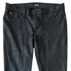 Hudson Nico Mid Rise Super Skinny Black Crackle Cropped Jeans Modern