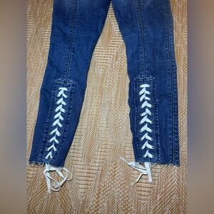 Hudson Nico Raw Hem Lace-Up Super Skinny Dark Wash Denim Jeans, Size 26