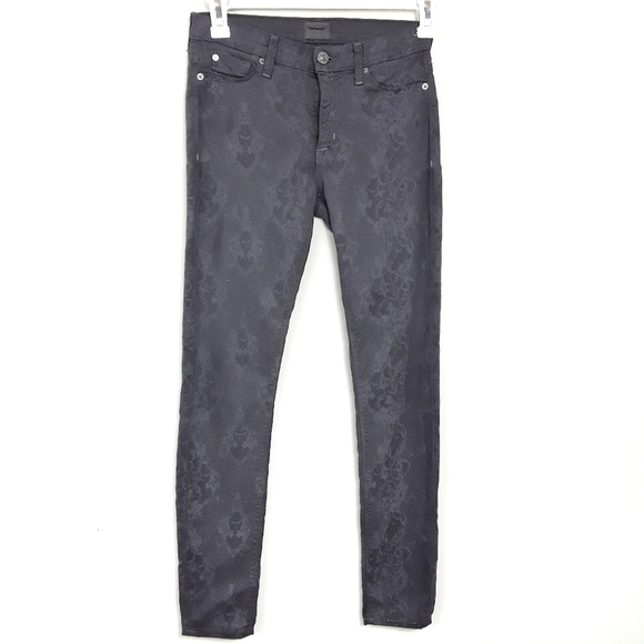 Hudson Nico Super Skinny Gray Snake Print Jeans. Size 27. Great pre-owned condition. Please see photos for wear. Approximate Measurements are