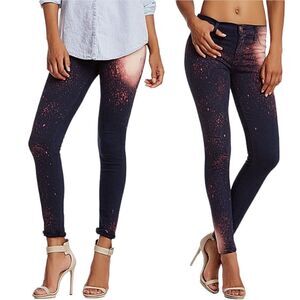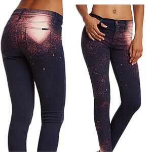 Hudson Nico Super Skinny Midrise Black Tie Dye Splatter Bleached Jeans