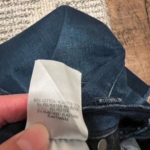 Pre-owned condition, mid rise supper skinny raw hem, 93% cotton, 5% polyester, 2% elastane. A1