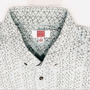 Hudson North Light Blue Mod Pattern Button Down Short Sleeve Top - EUC - size L